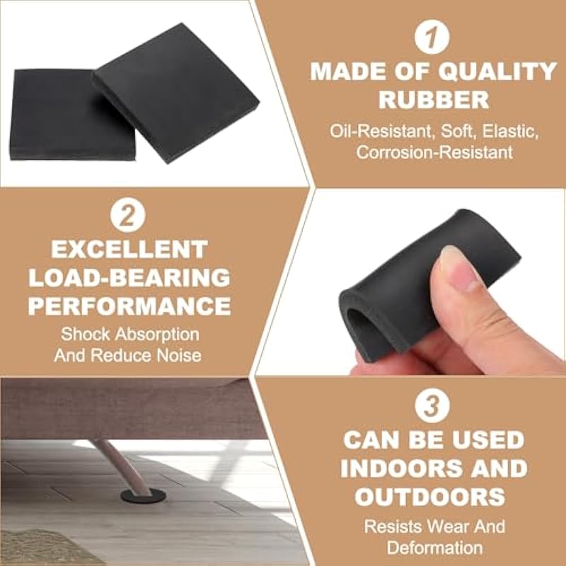 - Color: Black; Material: Rubber; Size: 60 x 60 x 20 mm/ 2.4 x 2.4 x 0.8 inch (L*W*H); Packing List: 8 Pcs x Multi Purpose Rubber Spacer