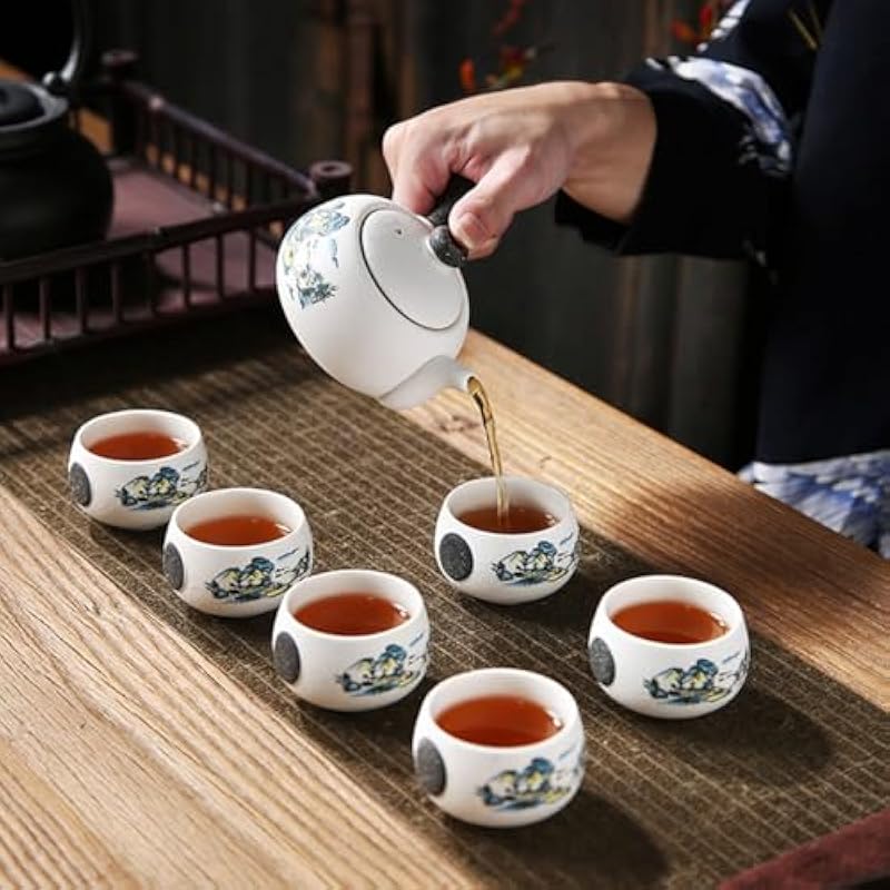 - Chinese Tea set: porcelain teapot 180ml with filter,Extra 6 teacups with handle.Suitable for traditional Chinese Kung Fu tea.Allowing you to serve 2 to 6 cups worth, whilst enjoying your tea with family and friends, whether that be at parties, dinners or any social gathering!
