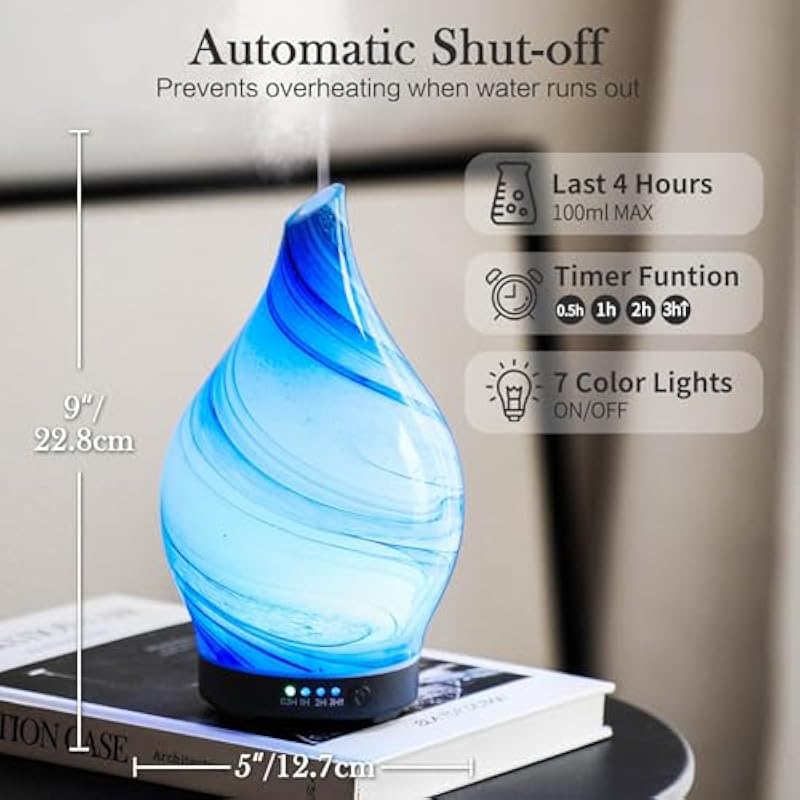 - HIGH QUALITY AND SAFETY – Made from BPA-free material with a hand-blown glass globe. The auto-off feature prevents overheating when water runs out, ensuring safety for you and your family. Perfect for worry-free use while you sleep