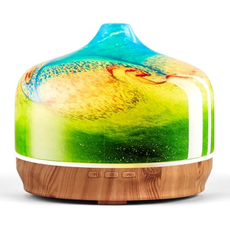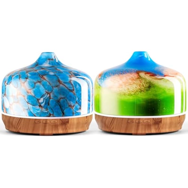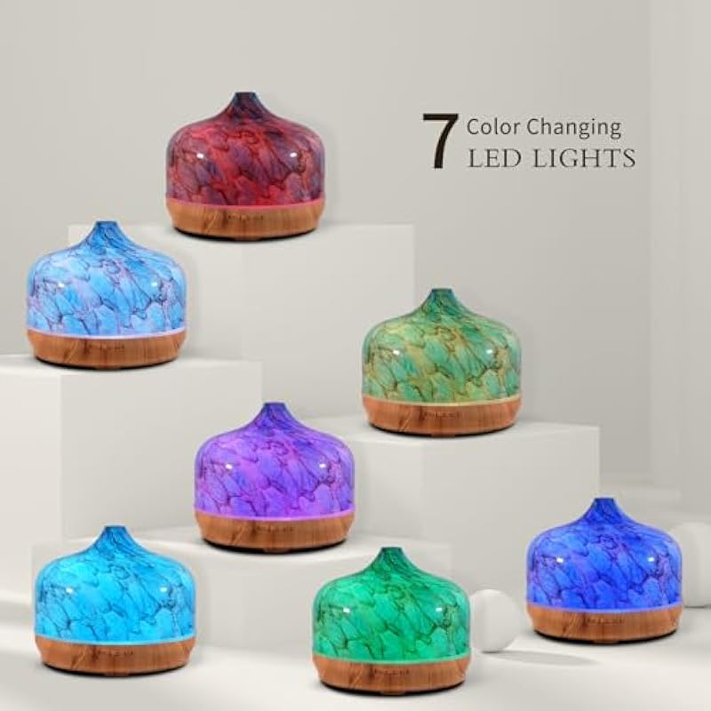 - UNIQUE ART DECORATIVE DESIGN – Our 500ml glass essential oil diffuser has an elegant starry pattern glass cover and wood grain decorative base.It is very suitable for your bedroom, living room, children’s room, study room, office and yoga room.
