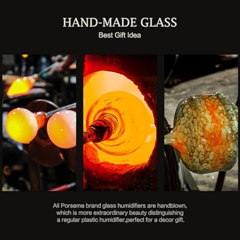 - HANDMADE GLASS DIFFUSER – Our 500ml Porseme diffuser, 6.5″ dia x 7″ h, crafted from hand blown glass. Lasts 15-21 hours with a good fog effect. Perfect for rooms up to 500-1000 square feet. Ideal for relaxation & unwinding