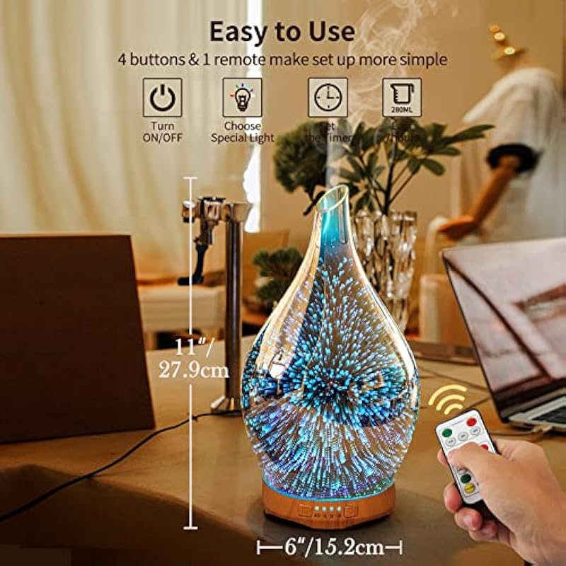 - HIGH QUALITY AND SAFETY – BPA free material with hand-blown glass globe.After you drop several essential oils that will release cool mist to fill everywhere.