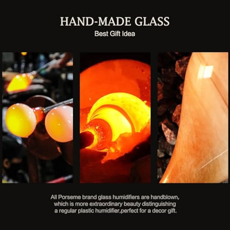 - HANDMADE GLASS DIFFUSER – Our Porseme 280ml aroma diffusers are 6” in diameter and 11” in height. They are handblown glass so each glass globe is unique. 280ml essential oil diffuser lasts for 7 hours and has a good output of mist. Fits a room not larger than 15*15(ft). You can place in any area and relax.