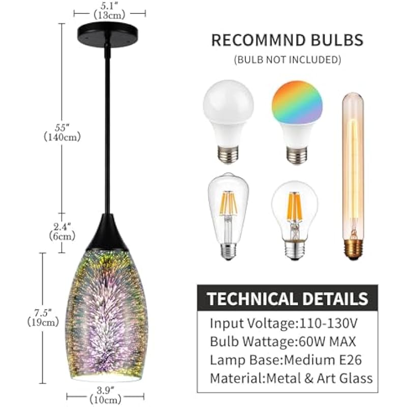 - STANDARD BASE AND LIGHT BULB – Our unique hand painted brown finish pendant lights are suitable for E26 socket and various bulbs under 60W. The base is also going to fit any standard ceiling.