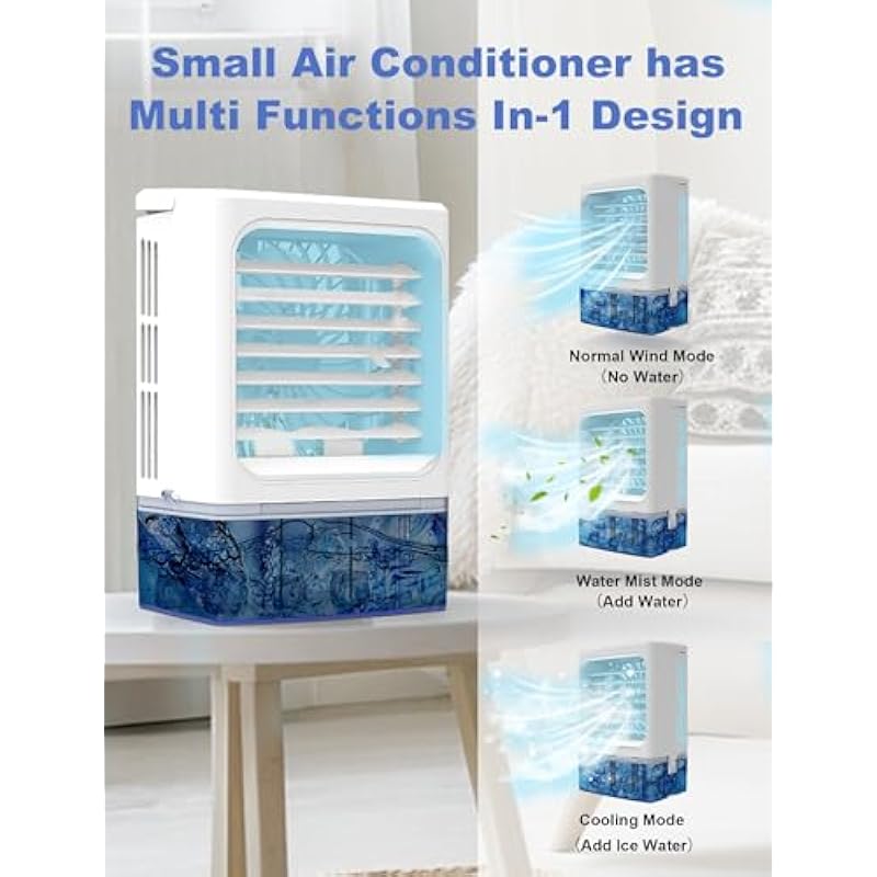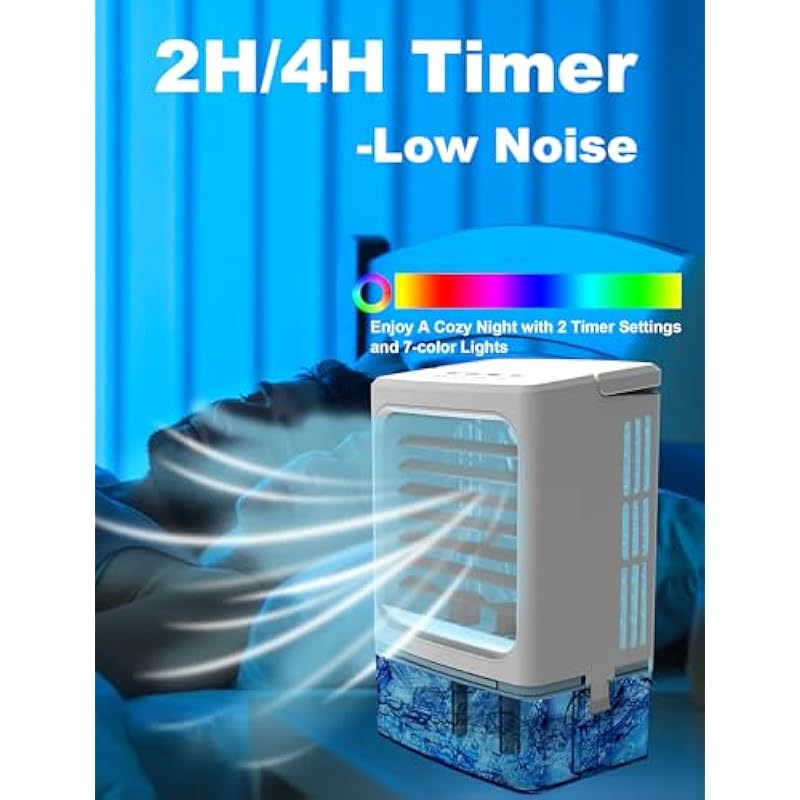 - 7-Color Cycle & Low Noise: The mini air conditioner fan features 7 soft cycling colors, creating a romantic ambiance for nighttime use. Air cooler operates powerfully while maintaining a low noise level, allowing you to enjoy a comfortable sleep all night at the perfect temperature
