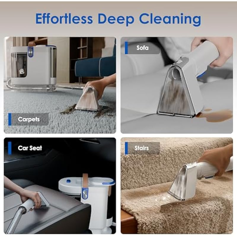 - 【Ultimate Multi-Surface Deep Cleaner】: This carpet cleaning machine is recommended for use with low-foam neutral cleaning agents, (Cleaning sofa, carpet and other cleaning agent ratio 1:30; Dish soap is diluted at a ratio of 1:10 for optimal performance.) Our rug cleaner machine is suitable for cleaning carpets, sofas,fabric, stairs, and other household surfaces, as well as car seats. It provides a comfortable cleaning experience and helps maintain a clean environment.
