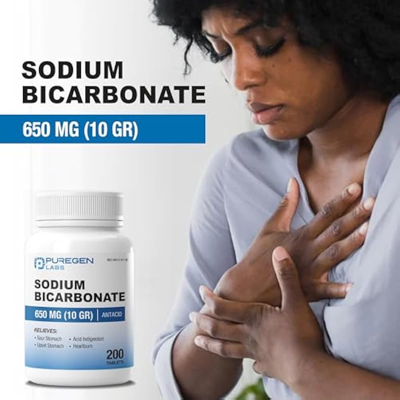 - ANTACID HEARTBURN RELIEF: Puregen Labs Sodium Bicarbonate provides fast-acting relief from heartburn by neutralizing excess stomach acid, reducing symptoms such as burning in the chest, sour taste, and bloating.