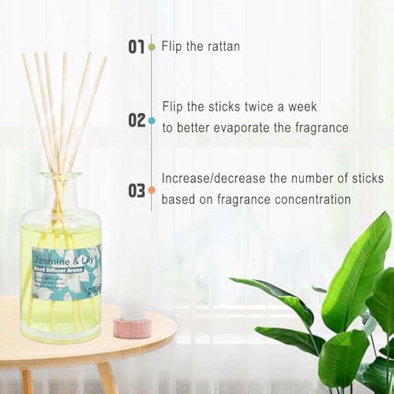 - [ Jamine & Lily Fragrance ] – Top Note: Jasmine, peony. Middle Note: Lily, rose. Base Note: Vanilla, vetiver. The Jamine, Lily flowers and Vanilla essential oil emits fresh floral and grass fragrance. APPROX. 90-120 days long lasting