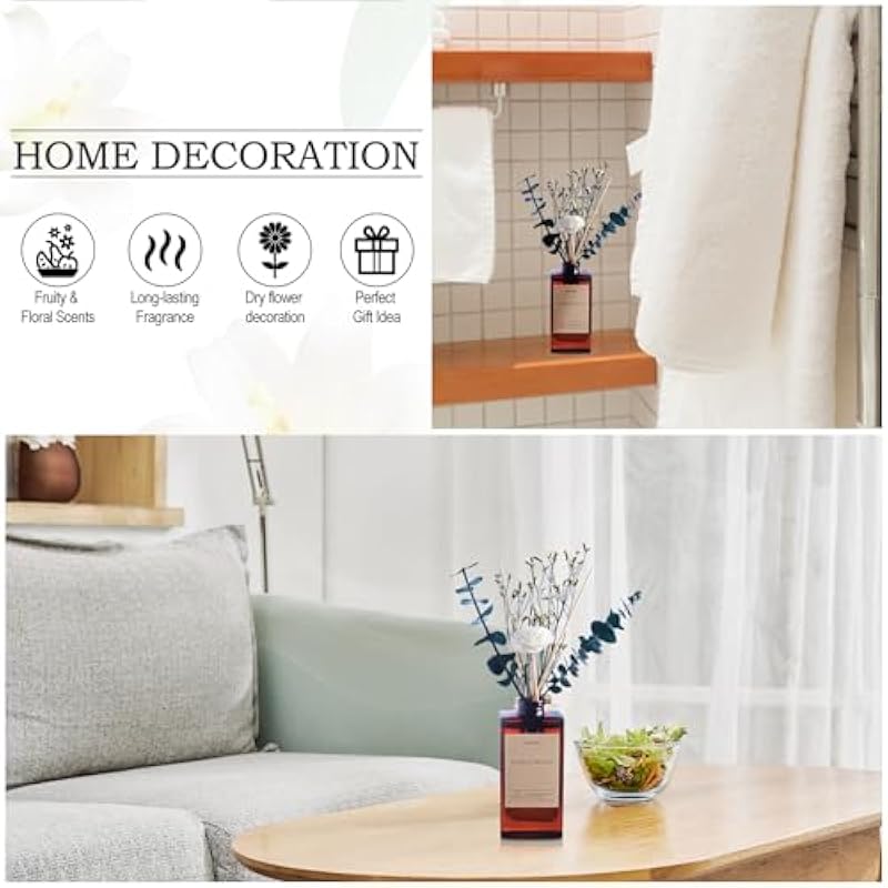 - Paired with Exquisite Dried Flowers – The reed diffuser is paired with meticulously preserved dry flowers, adding a natural floral and fruity aroma to the scent, and adding a touch of natural beauty to the design. These flowers enhance the visual appeal of the aromatherapy bottle and can be used as decorations for rooms or offices.