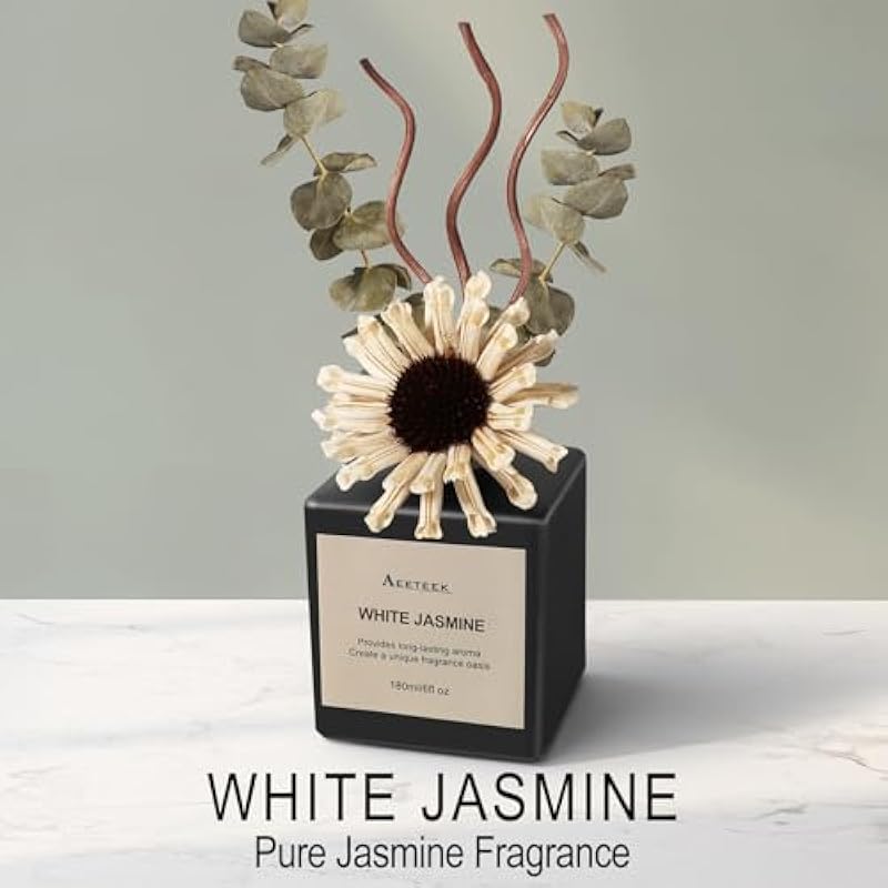 Reed Diffuser Set, White Jasmine Scented Oil with Dried Flowers, 6.09 Fl Oz(180ml) Long Lasting Air Freshener with Diffuser Sticks, Home Fragrance for Office Bathroom Decor