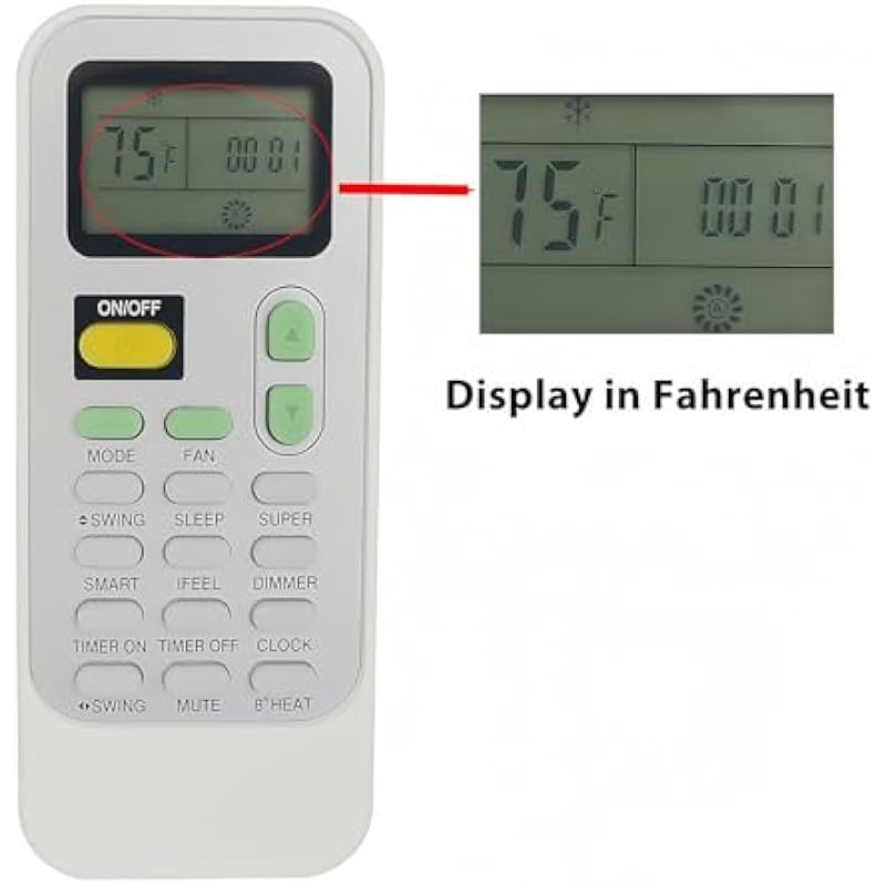 Replacement Remote Control Compatible for Soleus AC Air Conditioner SG-TTW-12HC-26 GM-WAC-10ESE-C GM-WAC-12ESE-C GL-PAC-08E4 SG-PAC-08E4 GB-PAC-08E4 (Display Both in Fahrenheit and Celsius)