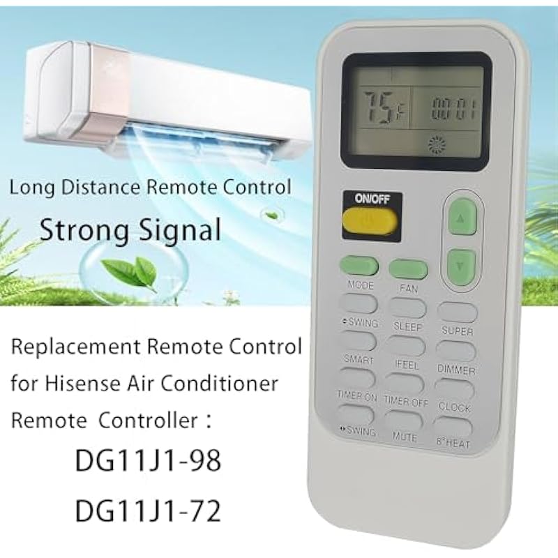 Replacement Remote Control Compatible for Air Con Air-Con Hisense Air Conditioner Remote Controller DG11J1-98 DG11J1-72 (Fahrenheit Display)