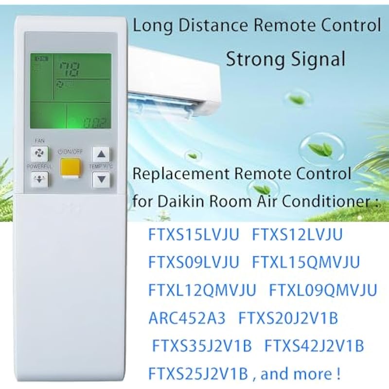 - Compatible for DAIKIN Air Conditioner models: FTXS15LVJU FTXS12LVJU FTXS09LVJU FTXL15QMVJU FTXL12QMVJU FTXL09QMVJU ARC452A3 FTXS20J2V1B FTXS25J2V1B FTXS35J2V1B FTXS42J2V1B .
