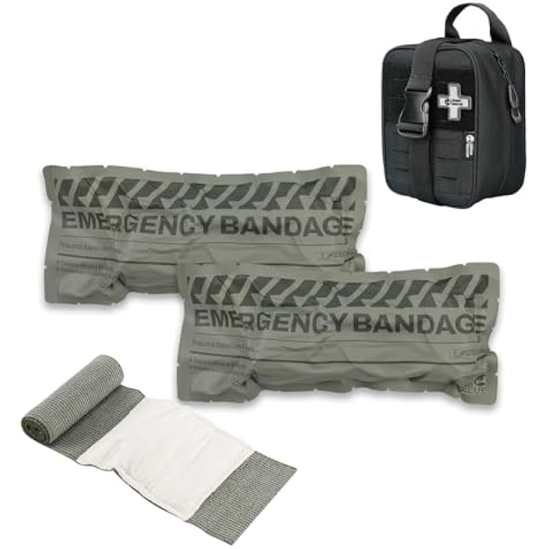 - 【MEDICAL & MILITARY LEVEL】The emergency bandage’s sterile, non-adherent pad applies pressure to any site, can be easily wrapped and secured, and has an additional application, similar to a tourniquet, to further constrict blood-flow. This medical supply is widely added in car first aid kit, IFAK trauma kit, tactical pouch, survival bug out bag……