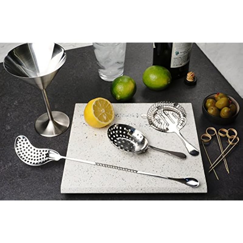 - PERFECT YOUR BARTENDING SKILLS: Hold over the top of your shaker or glass and strain.