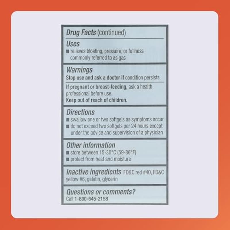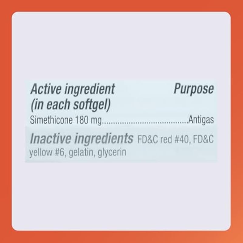 - RELIEF WHEN YOU NEED IT: Get back to feeling like yourself with our specially formulated anti-gas support pills. These softgels each contain 180mg of simethicone.