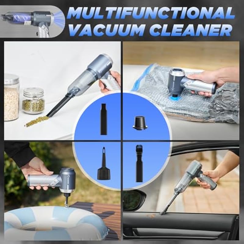 - 【3-In-1 Multifunctional Design】Saker mini vacuum cleaner is equipped with multiple accessories and can be used for various scenarios such as inflation, soot blowing, dust removal,let us enjoying the convenience of a multifunctional device. You can use this handheld vacuum cordless to clean difficult cleaning crevices such as cabinet corners, drawers, computer keyboards, and mainframes, as well as inflate lifebuoys or air mattresses.