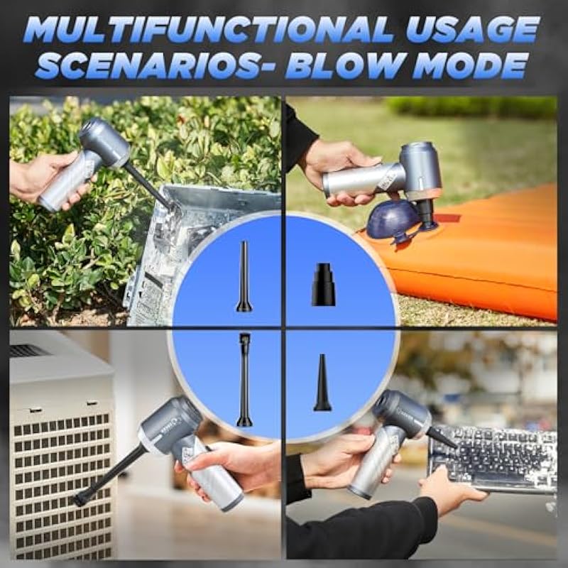 | Included Components | Blowing nozzle and inflator nozzle, Dusting Brush, Flat suction, Stainless steel filter screen, Storage bag |