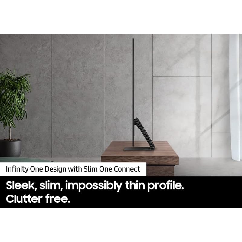 - INFINITY ONE DESIGN w/ SLIM ONE CONNECT: Samsung’s Infinity One Design is sleek, slim and impossibly thin; Its strikingly slender design features modern lines and an attachable Slim One Connect solution to neatly organize cords and cables