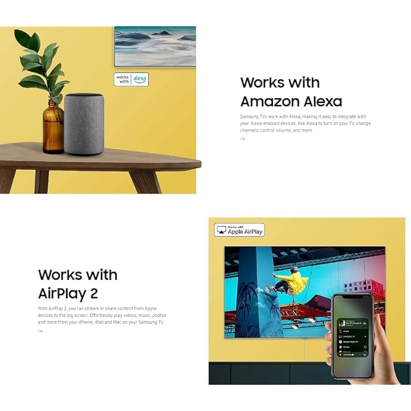 - Smart Tizen OS + Voice + Security: Runs on Tizen OS with integrated voice assistants (Bixby, Alexa, Google), Samsung TV Plus, Smart Hub.Includes Samsung Knox security.