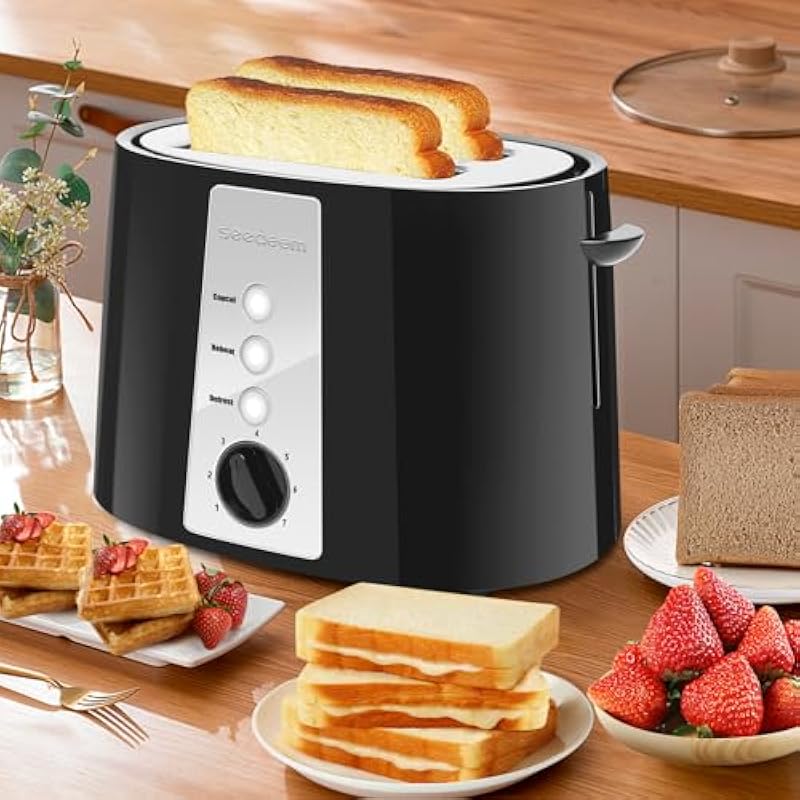 Toaster 4 Slice,KOTIAN Retro Long Slot Toasters with Countdown Timer,Stainless Steel Toaster,Bagel,Defrost,Reheat,Cancel Functions,Extra Wide Slots,6 Toast Settings,Removable Crumbs Tray,Matte black
