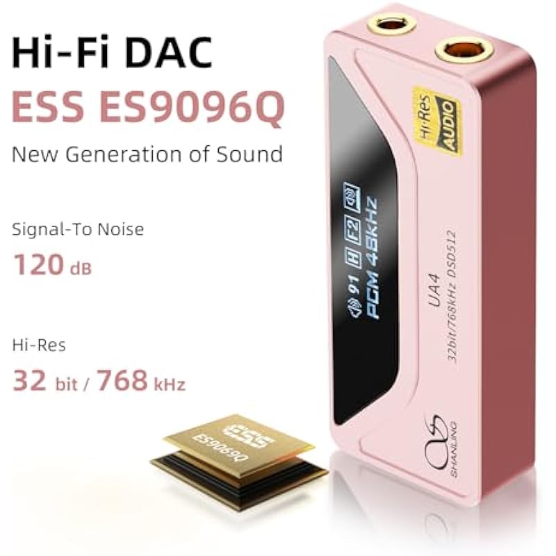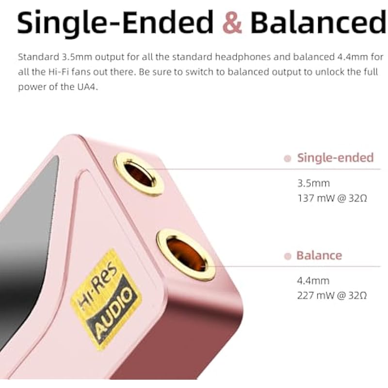 - 【Excellent Sound】UA4 is equipped with Flagship ES9069Q HiFi DAC, support up to 768kHz/32bit,256DSD,SNR up to 120dB.