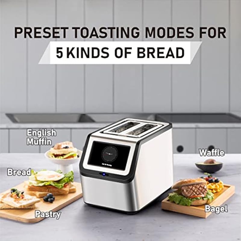 - Smart System & 5’’ LCD Touchscreen:This toaster is equipped with a 5’’ full-vision LCD touchscreen and a fully automatic smart system, automatic lifting with leverless. With the precisely calculated time, the bread can be toasted to the best taste.