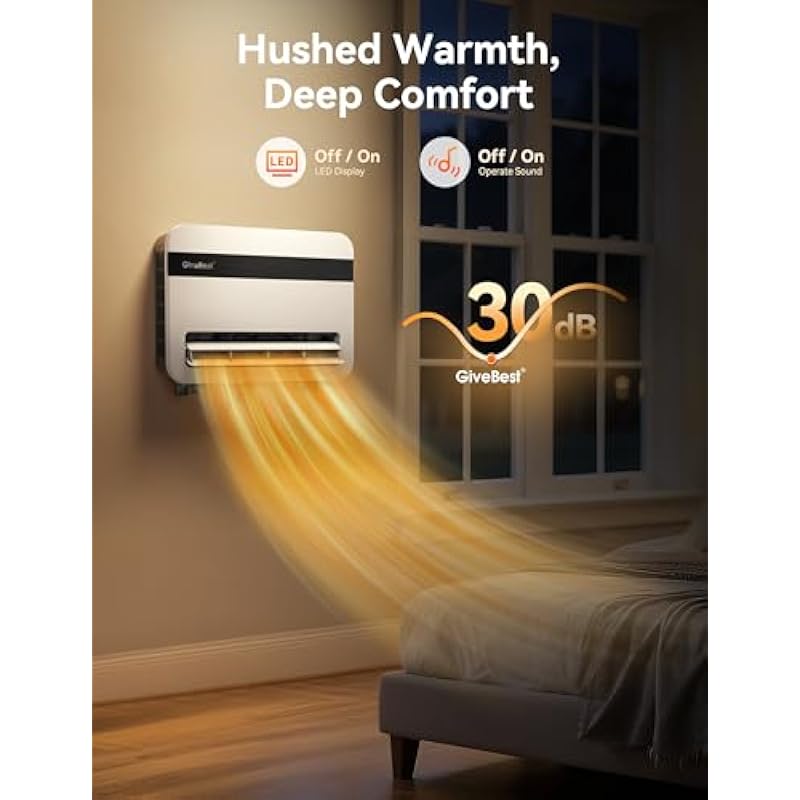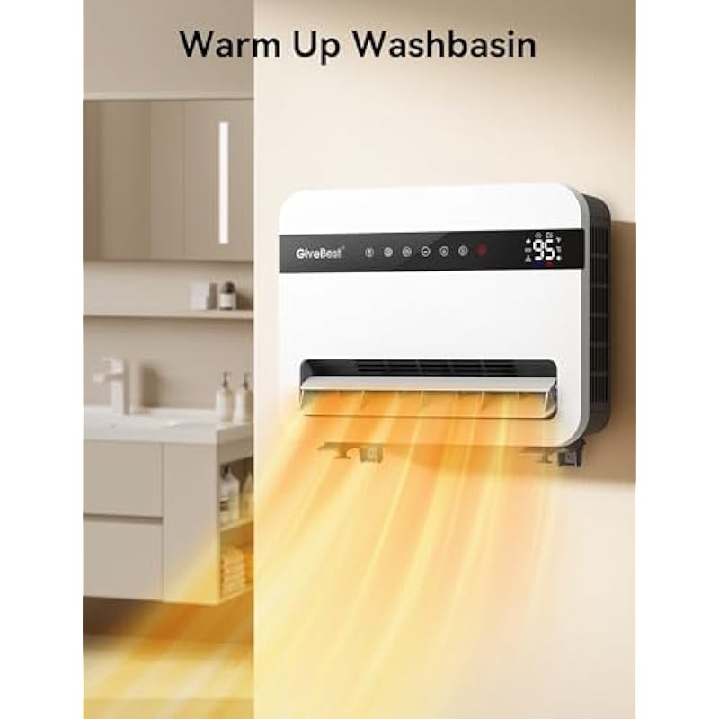 - 2S Fast Heating & Multiple Modes: The GiveBest wall space heater heats up more efficiently with up to 1500W working power, reaching your desired temperature immediately, letting you feel fast, balmy heat straight away. Choose from 5 heating modes ECO, P3(1500W)/P2(1200W)/P1(900W), FAN Only according to your needs
