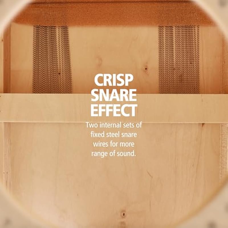 - HAS SNARES: inside the cajon are two sets of fixed steel snare wires that give you a crisp tone for more range of sound; they’re fixed into position for the best response