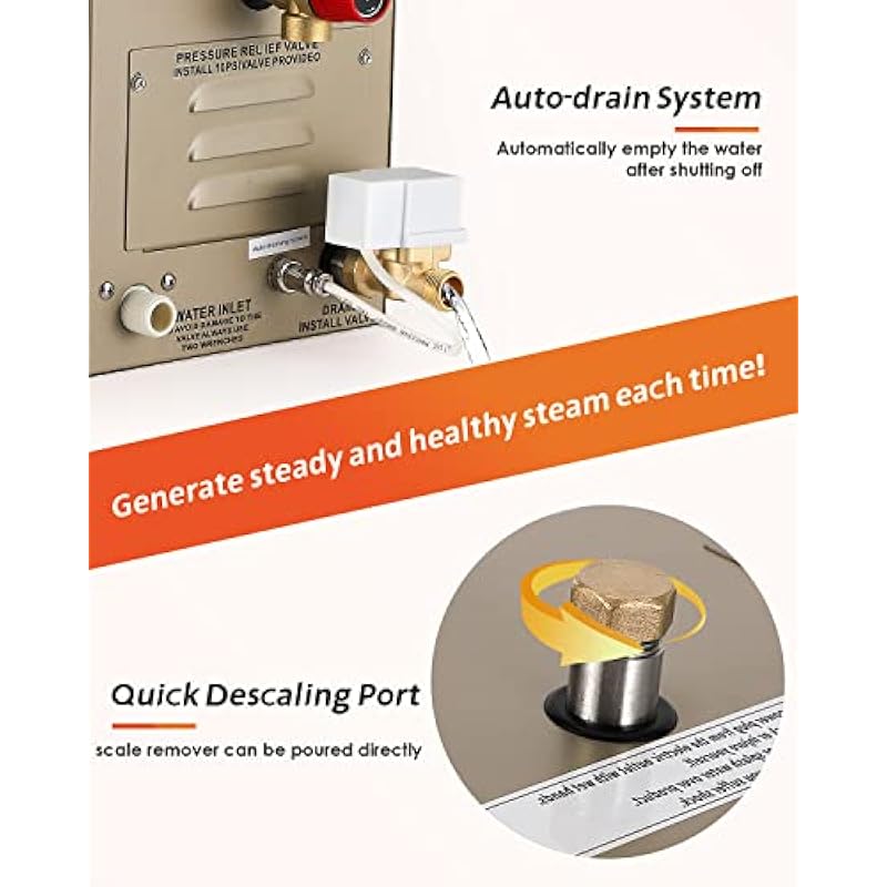 - [EASY MAINTENANCE] The health hazards of limescale are easily overlooked. While the auto-drain system and built-in magnesium rods reduce and delay scale formation, it will eventually build up over time. Our Hapyvergo steam generator is designed with a special quick descaling port, which only takes ten minutes to descaling every two months.