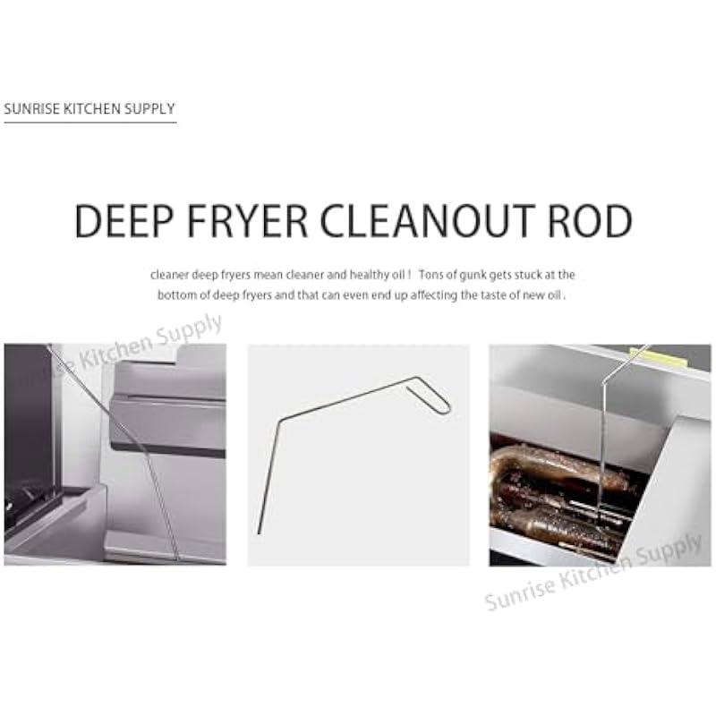 - 21″ deep fryer clean up rod is used to break up the hardened oil.