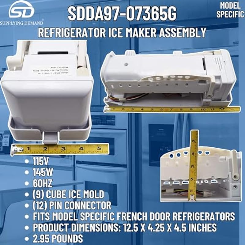 - 115V | 145W | 60Hz | (9) Cube ice mold | (12) Pin connector | Fits model specific French door refrigerators