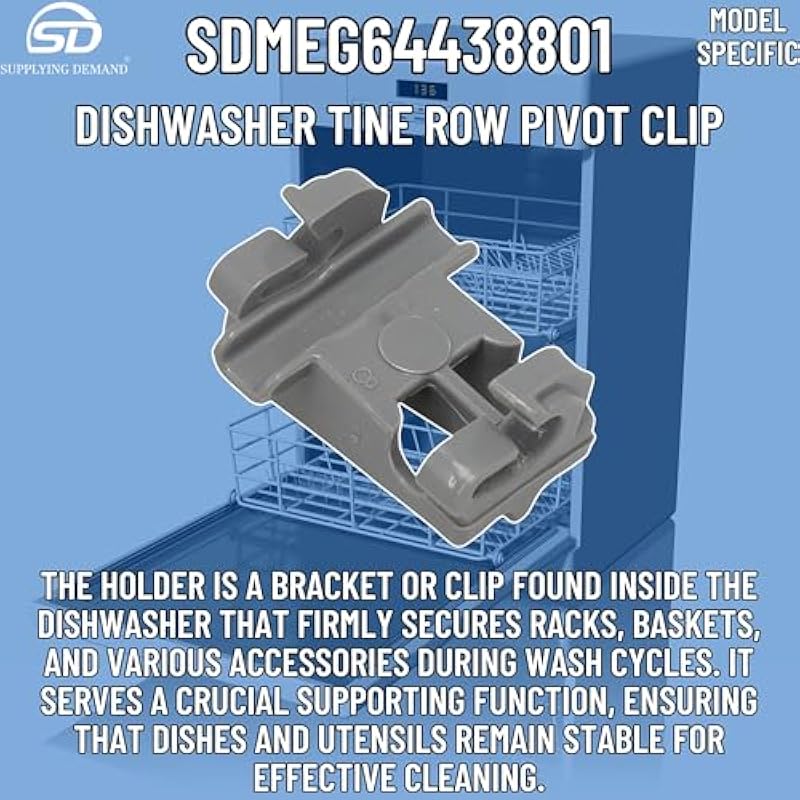 - Enhance your dishwashing experience by installing the Supplying Demand Dishwasher Tine Row Pivot Clip, which plays a crucial role in maintaining optimal rack alignment for better water flow and cleaner results.