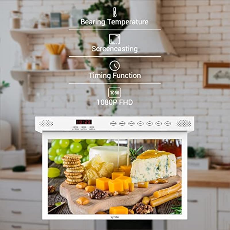 - 【1080P Kitchen TV】1920×1080 crisp resolution, 178° viewing angle ensures that you can see the screen clearly from almost any position in the room, making it ideal for use in a kitchen or other small space where viewers may be moving around frequently.