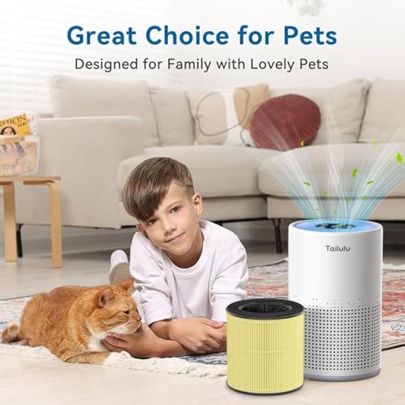 Tailulu Official AP050 Air Purifiers for Bedroom Home Pets 1200 Ft² with Replacement Filter White+Yellow, 2Pack