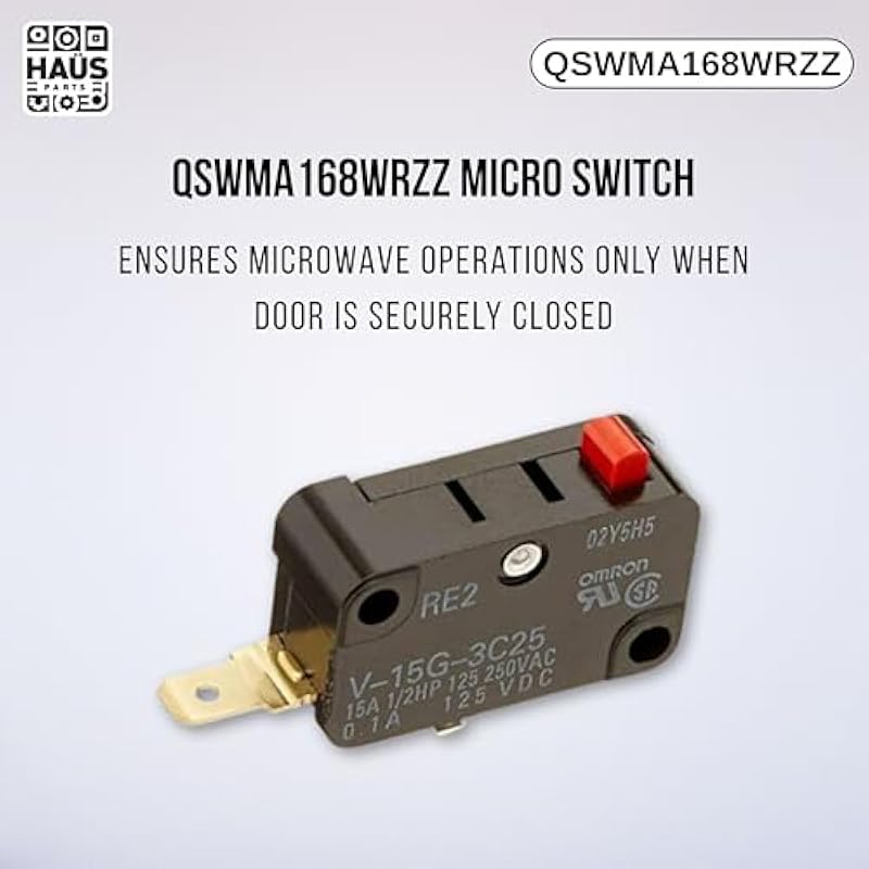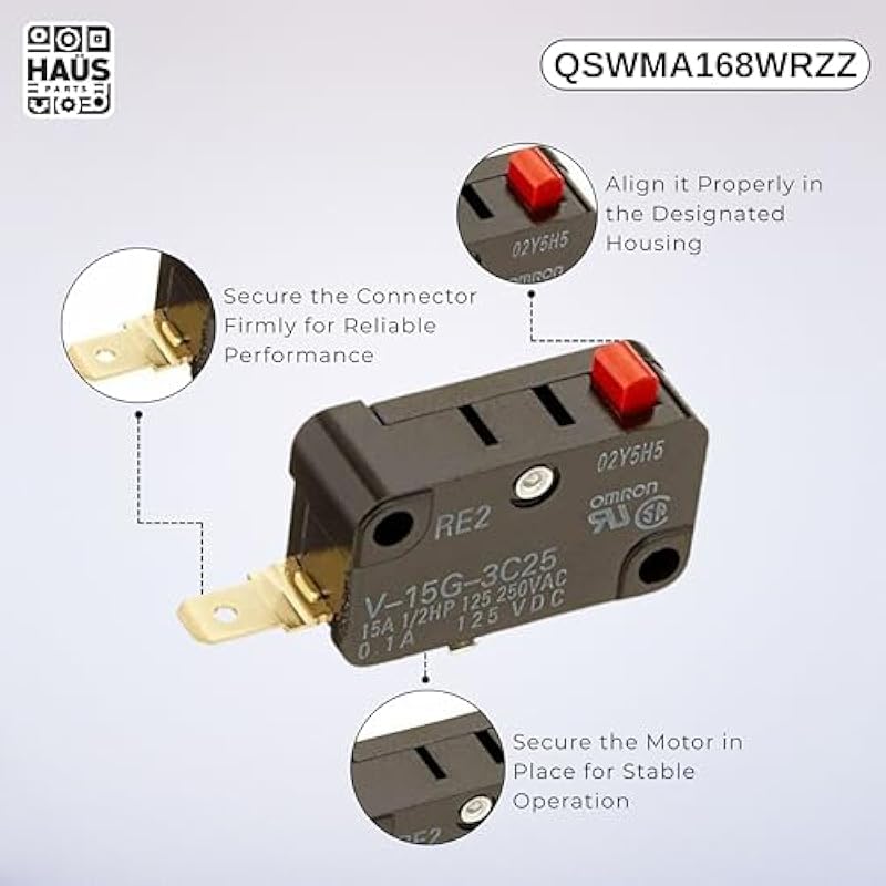 - Functions: QSWMA168WRZZ Micro Switch – Door Interlock in the electrical state of the micro switch can be utilized to control various functions, such as turning on or off a device, activating an alarm, or ensuring that the door is locked during specific operations.