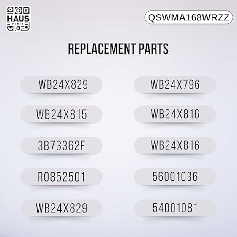 - Replaces With: WB24X829, 53001019, 54001080, 54001081, 56001036, WB24X796, WB24X815, WB24X816, 8183561, 8184285, R0654097, R0852501, 8184285, r0654097, r0852501, QSW-MA168WRZZ, 3B73362F, WB24X816, 6600W1K003C, QSWMA085WRE0, WB24X829, 54001081, 56001036, 8183561
