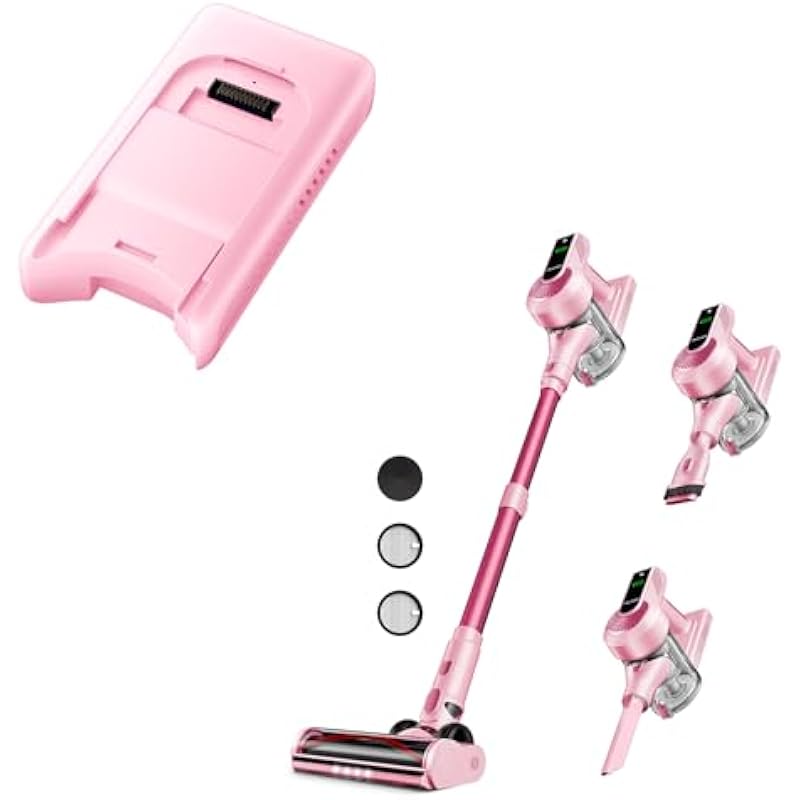 - 【Self-Standing & Space-Smart】 This self-standing cordless vacuum stays vertical on any surface without wall mounts. Pause cleaning instantly to handle pets/kids, then resume with one hand – no bending or tipping