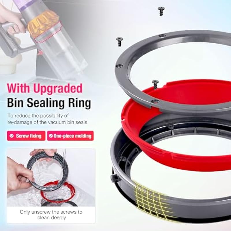 - Upgraded Sealing Ring: Our V11 dust bin features an upgraded top fixed bin sealing ring, reducing the possibility of re-damage to the vacuum bin seals. Enjoy improved sealing and prevent dust leakage.