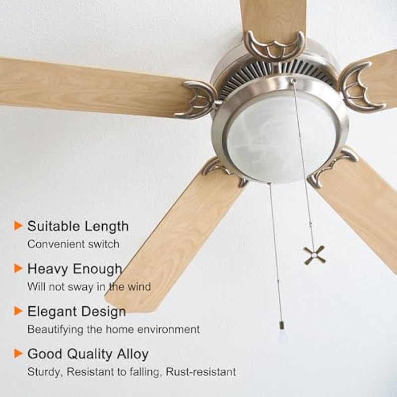 - Advantage: 1. Fan and bulb design, fan pull chain will easily help you identify which is the fan switch and which is the light switch, and facilitate our daily use. 2. The ceiling fan pull chain is made of quality alloy, it is heavy enough and will not sway in the wind, is sturdy and resistant to falling, rust-resistant, not easy to be hurt and fade, and has a long service life. 3. The length is suitable and can be reached by raising your hand, making it easy for you to switch on and off.