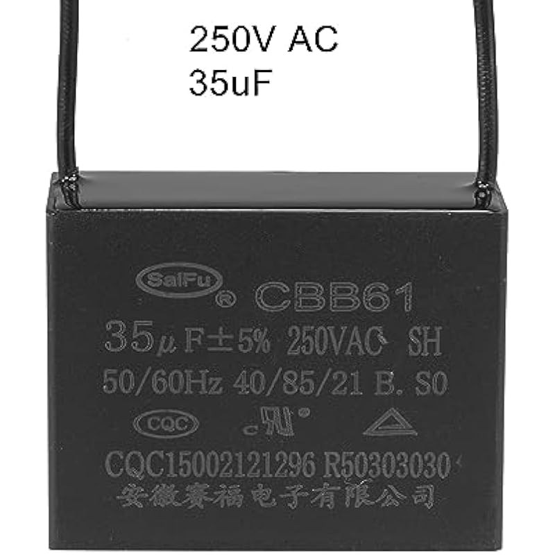 - [Specification] -Rated Capacity: 35uF; Tolerance: ±5%; Rated Voltage: 250V AC; Cover Size: 58x45x26mm / 2.3×1.8x1inch; Rated Frequency: 50/60Hz; Climatic Category: 40/85/21