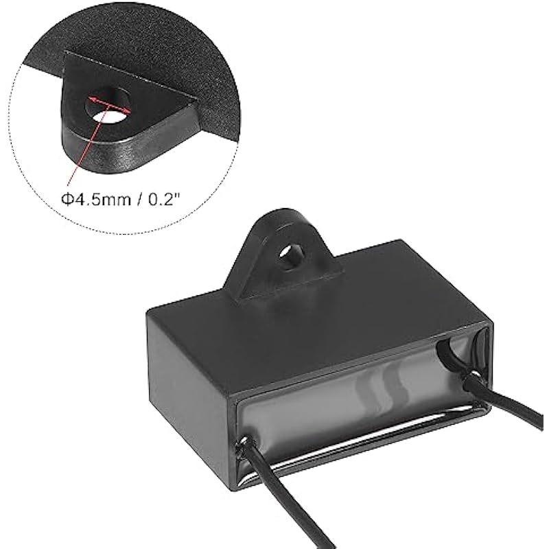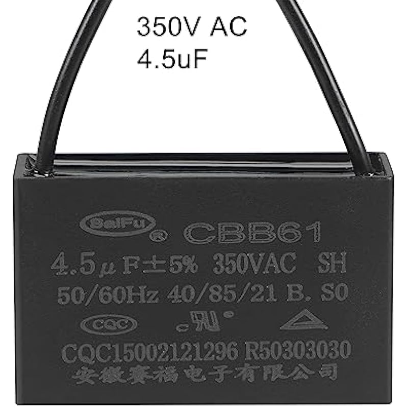 - [Specification] -Rated Capacity: 4.5uF; Tolerance: ±5%; Rated Voltage: 350V AC; Cover Size: 47x29x18mm / 1.9×1.1×0.7inch; Rated Frequency: 50/60Hz; Climatic Category: 40/85/21