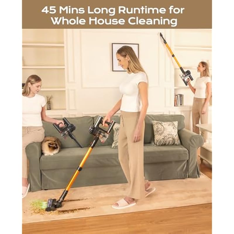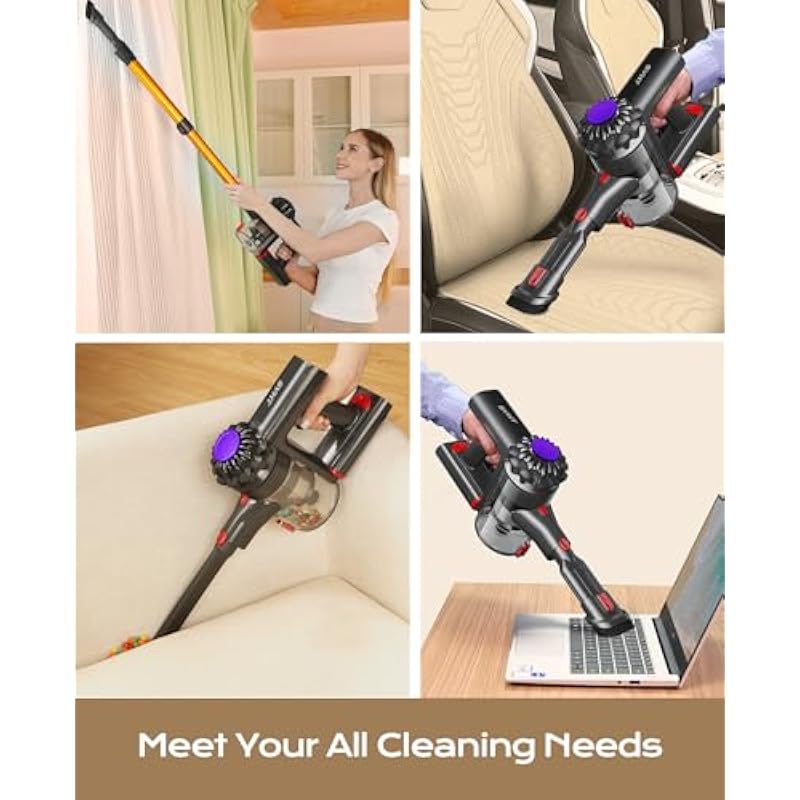 - 【Lightweight & Versatile Cleaning Companion】The main body weighs only 3 lbs, the cordless vacuum cleaners for home is effortless to maneuver and handle, without putting strain on your back and hand. The lightweight vacuum can be transformed into a handheld vacuum in seconds. With 2-in-1 brush to clean curtains, furniture, and soft furnishings, and the crevice tool is suitable for cleaning hard-to reach areas, window sills, frames and car interiors. A true multifunctional stick vacuum!