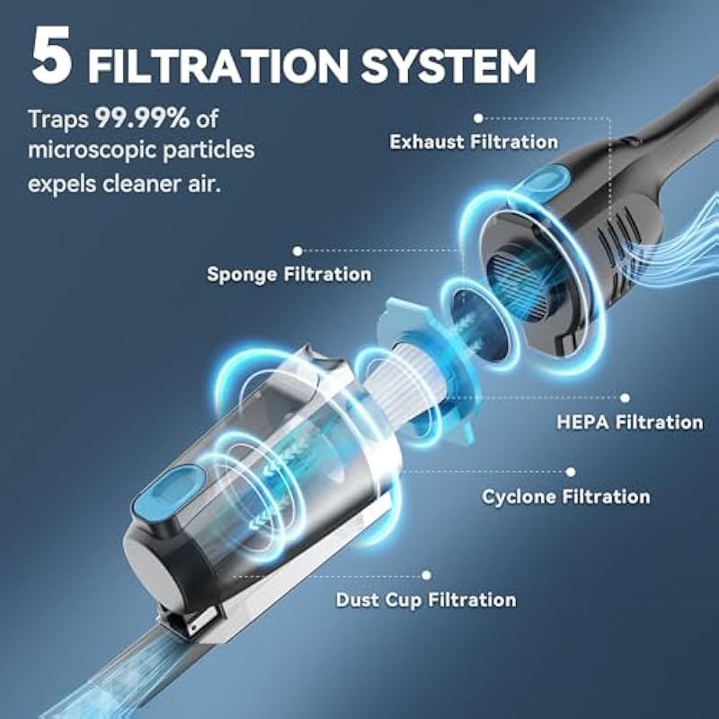 - 【Cyclone HEPA Filtration System】Our vacuum cleaner with high efficiency cyclone technology helps to clean up to 99.99% of tiny dust particles as small as 0.1 microns, which can separate different sizes of dust and avoid secondary pollution. So this corded stick vacuum cleaner provides purified air for your family.