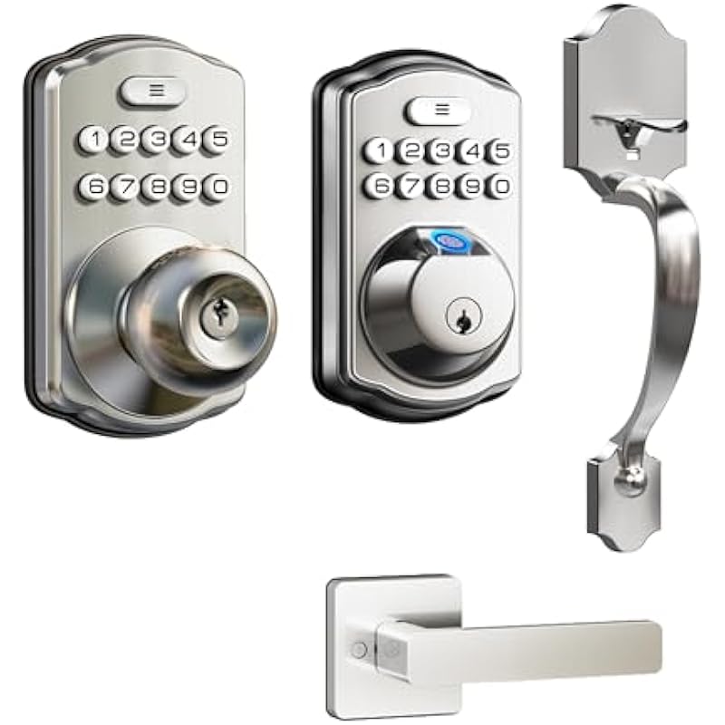 Veise Keypad Door Lock with Handle Set & Knob, Satin Nickel