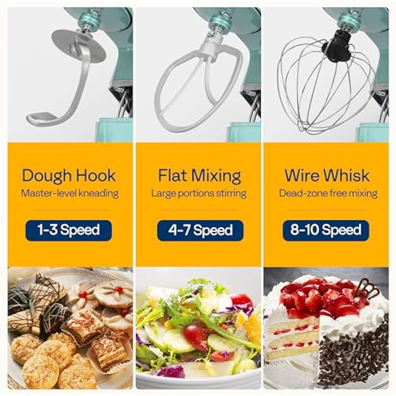 - LARGE CAPACITY: The 8.5-quart stainless steel mixing bowl is perfect for typical kitchen needs, making it easy to prepare bread, cakes, and desserts; The locking groove design securely holds the bowl in place, ensuring stable mixer operation; Additionally, the 1.5-quart glass jar allows for sharing more vegetable juice, fruit juice, or milkshakes, creating delightful beverages for family and friends
