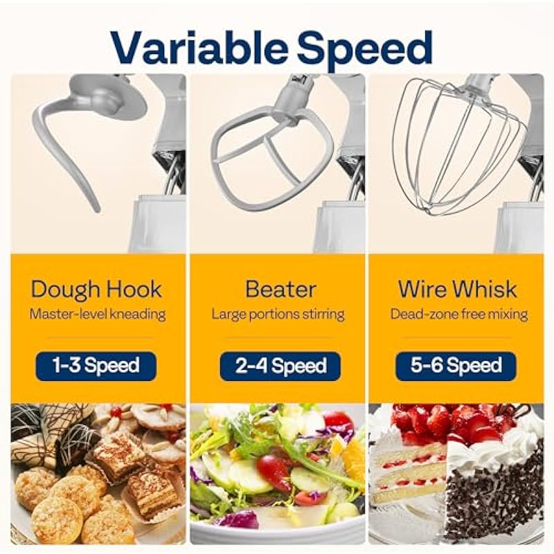 - 6 SPEEDS & FERMENTATION MODE: Choose from six precise speeds or use the upgraded F setting for fermentation, perfect for making dough rise at the ideal temperature; Its 360° planetary mixing design ensures that the attachments make even contact with the ingredients in the bowl, mixing them thoroughly and evenly, resulting in better-tasting food for a variety of recipes