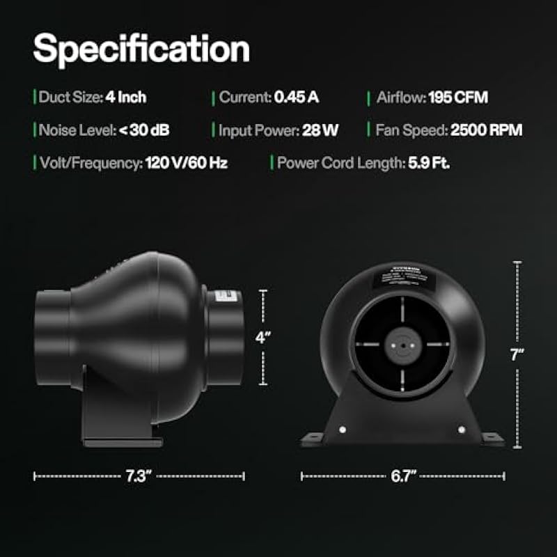 - Wide Applications: It can improve airflow to reduce humidity, block odors, and lower temperatures in grow rooms, basements, or kitchens
