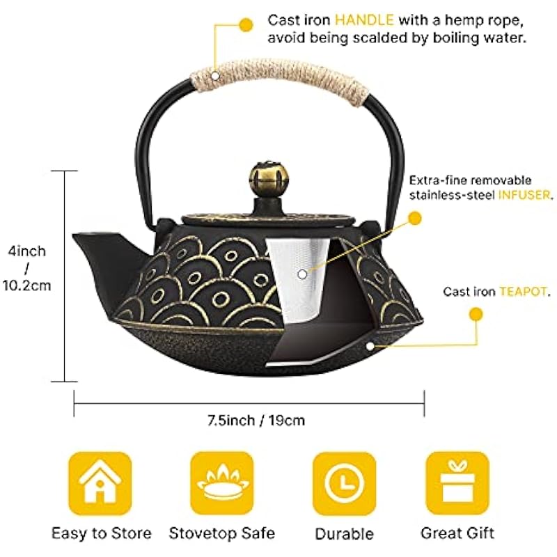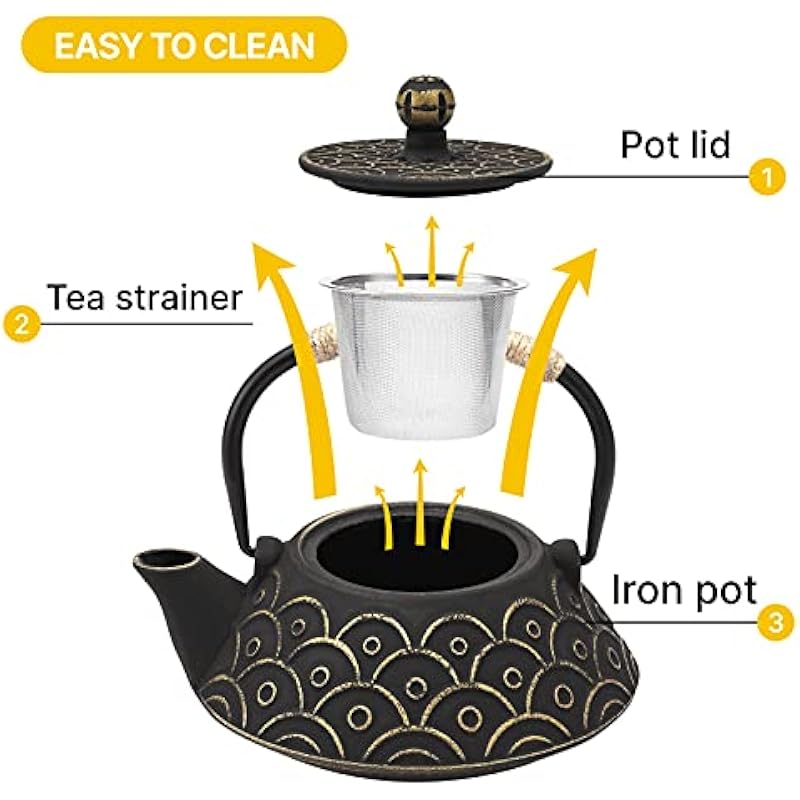 - Sturdy Material and Enamel Coating – Our Japanese tea pot is made of strong and sturdy cast iron makes the black tea infuser pot solid and durable. The enamel coating inside metal teapot makes it easy to clean the black teapot and increases the antioxidant ability for rust protection and better tea brewing experience.