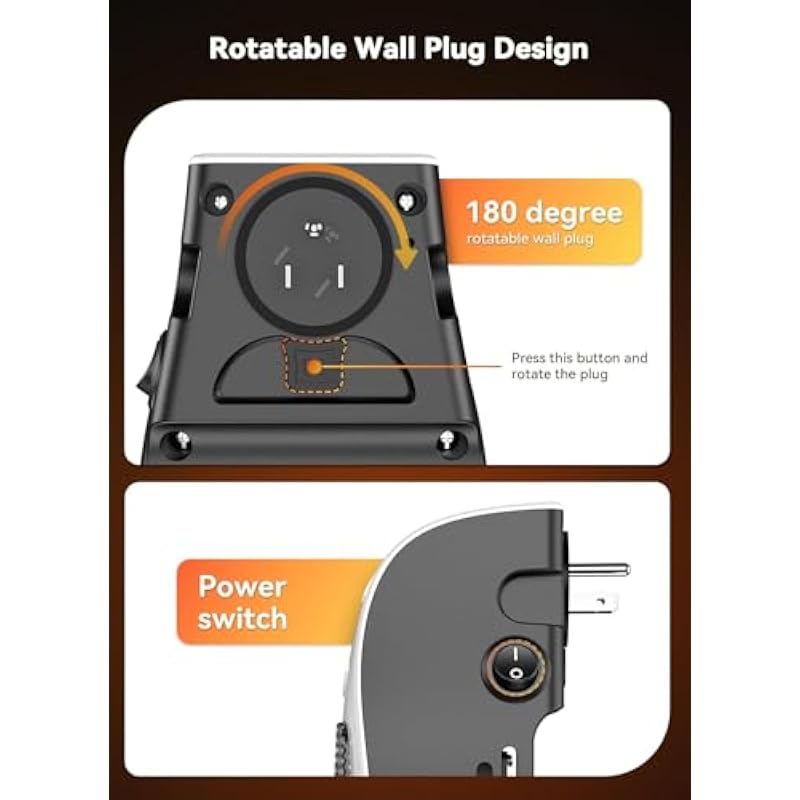- 🔥 Compact Portable Space Heaters for Indoor Use: This portable cyber heater is a wall outlet heater for small spaces indoor use, with compact structure and lightweight body, only 2.8 x 4.3 x 6.5 inches mini size and 0.88 pounds lightweight, the heating cover up to 100 square feet ( this depends on your room is airtight) adopts 180° rotating 3-jack plug for wall, so convenient to use and carry, it is a perfect heater for indoor use such as for bedroom, dorm, personal, your bb’s room use or for and dog, cat use